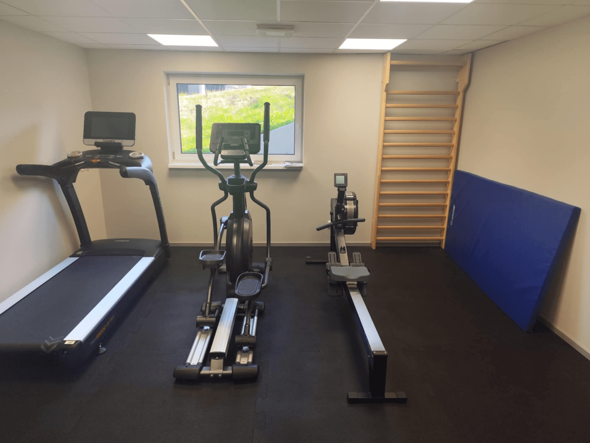 Sisustasime väikese jõusaali erinevate kardio- ja jõumasinatega.